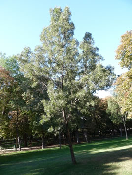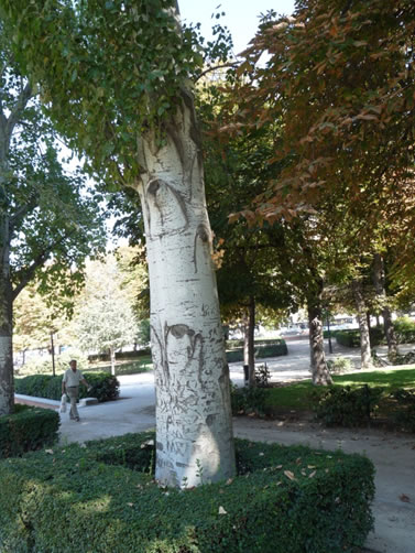 Este es un Populus alba, con su tronco blanquecino (muy propio para los graffiti) y sus hojas con el envés también clarito. |