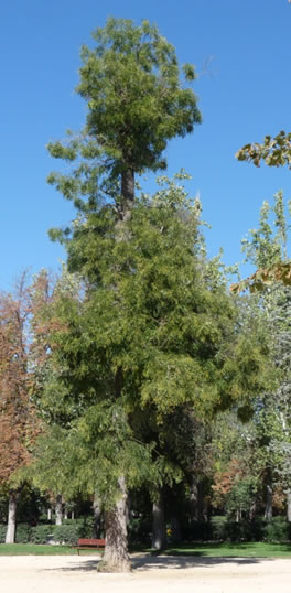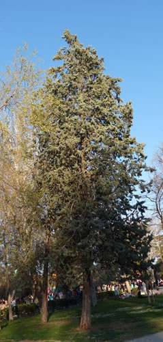 Disimulado entre los castaños de Indias a pesar de su enorme altura, vive este eucalipto rojo, Eucaliptus camaldulensis. |