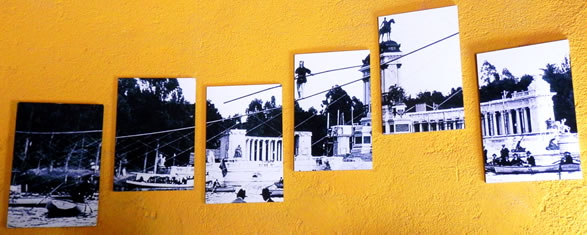 Aquí vemos a otro acróbata cruzando el estanque mientras se construía el monumento a Alfonso XII. Estas fotos montadas de forma tan artística están en la caseta de la Chopera.
