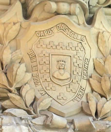 Hay sendas dedicatorias en dos paredes de piedra caliza: