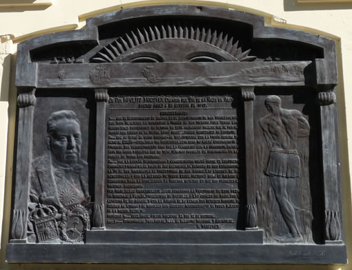 La señora Minerva por detrás luce así. Y en la base hay otro cartelito: "COMPUSO Y LABRÓ ESTA FUENTE EL ESCULTOR VICTORIO MACHO". |