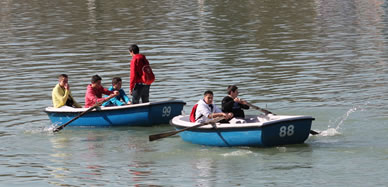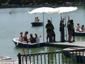Otros "habitantes" del estanque son las gentes que alquilan las barquitas como hacía yo cuando era pequeño y luego para pasear con Charo y Diego.