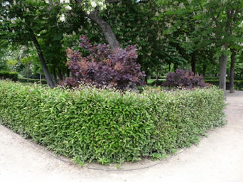 El arce japonés también es arbustivo aquí, pero le delatan sus hojas estrelladas. |