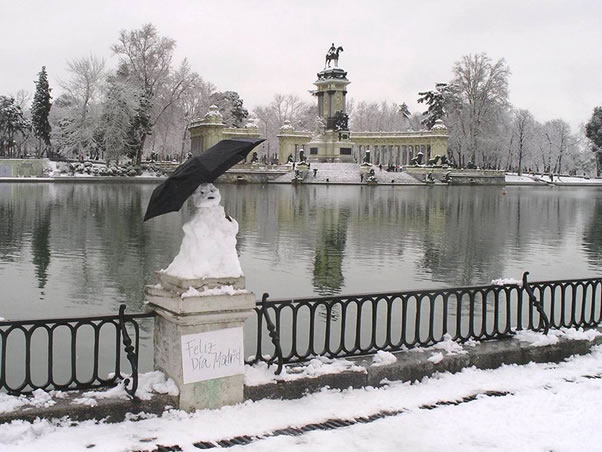 Cuando nieva el monumento se ve así. |