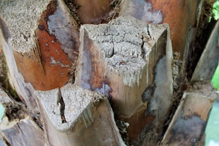 El tronco de donde salen las "palmas" y detalle de las ramas cortadas y de los dátiles (no confundir con los míos). |