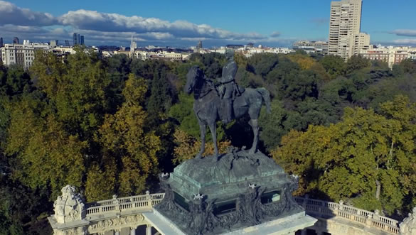 Por cierto que este monumento fue hecho para el Parque del Oeste pero, por las condiciones del terreno, se trasladó al Retiro en 1923, siendo inaugurado aquí por Alfonso XIII en 1926.